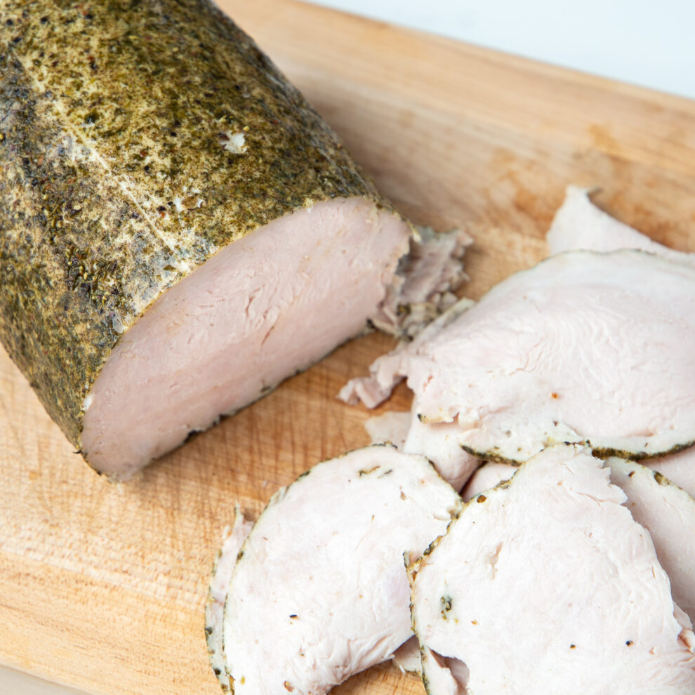 The Application: This isn’t your average chicken sandwich. Our Lemon Pepper Chicken Deli Log provides a zesty citrus punch when stacked high on top of a Kaiser roll with crisp lettuce and fresh slices of vine-ripened tomato with a savory lemon-caper aioli.